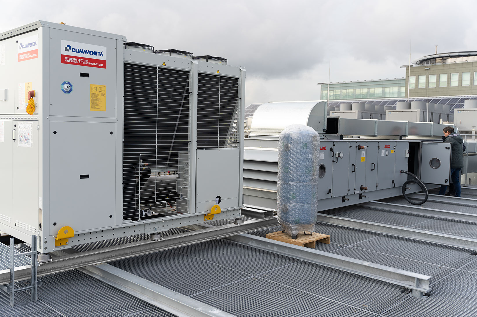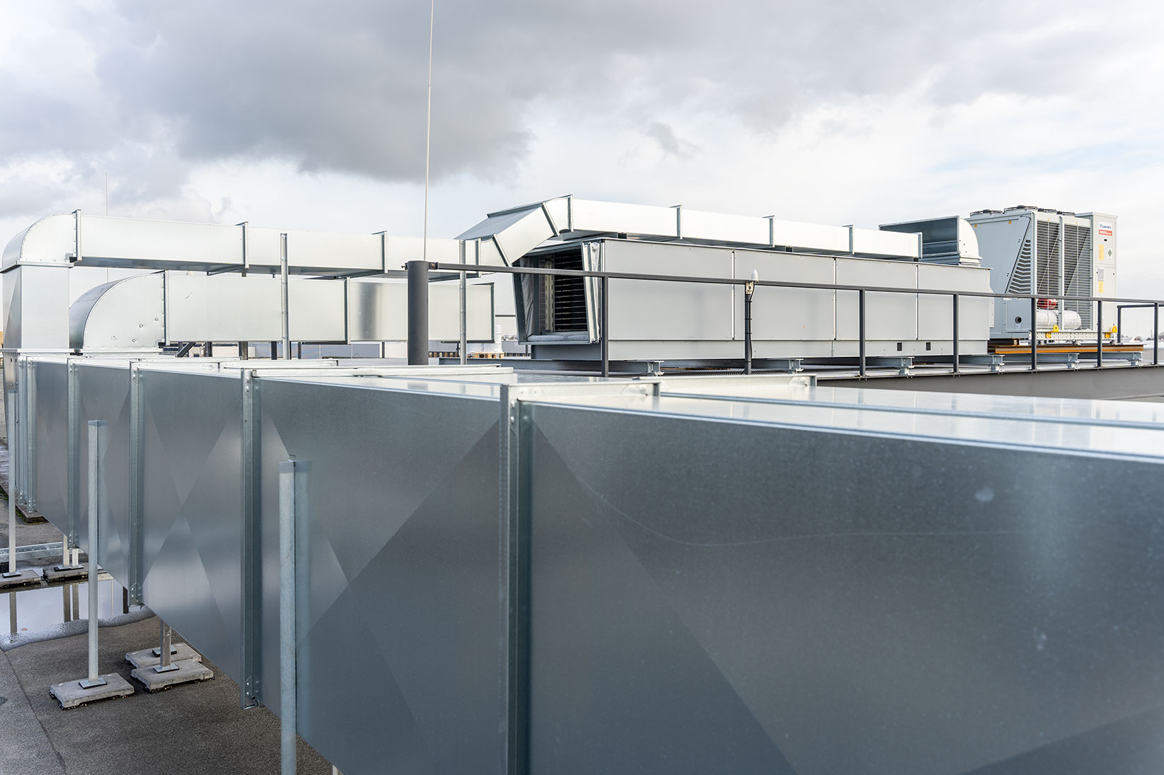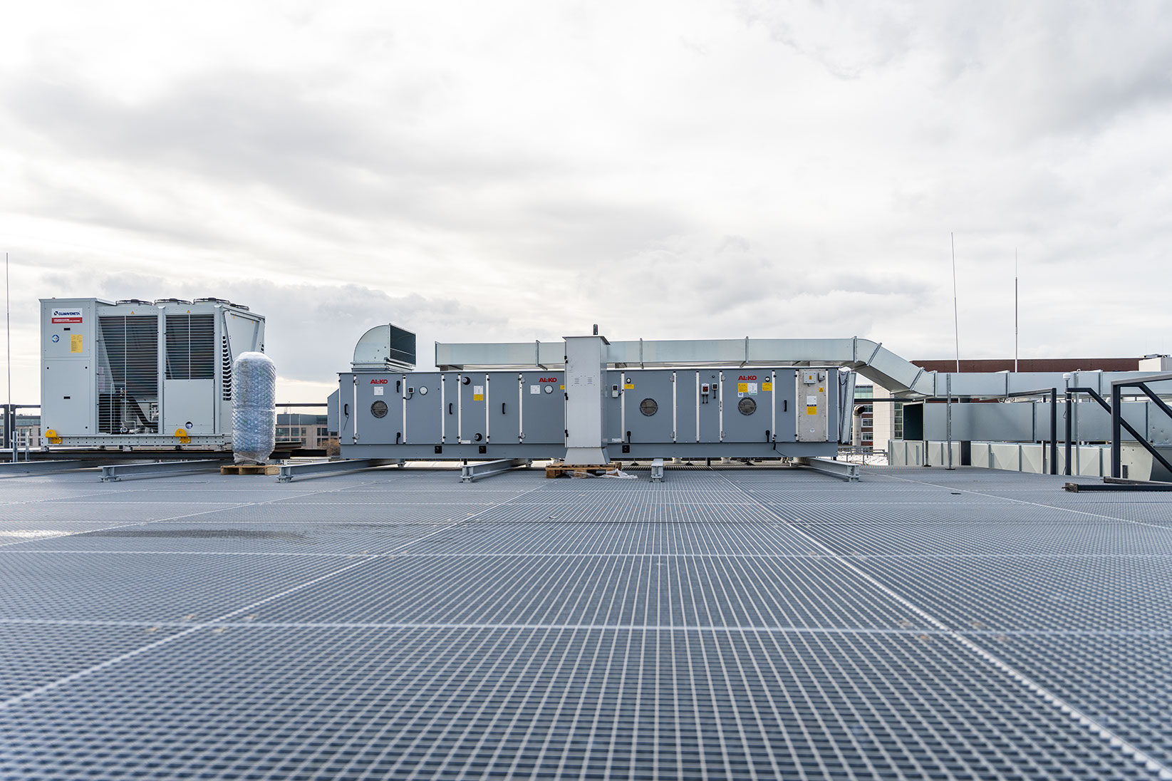 Wij ontwierpen een centraal opgestelde luchtbehandelingsinstallatie en ontwikkelden bovendien geschikte regeltechniek. Daarvoor sloten we aan bij de bestaande software in koelmachines, downflow-units en het centrale gebouwbeheersysteem. Het ontwerp is zo gemaakt dat bestaande luchtkanalen in het datacenter kunnen worden hergebruikt om de behandelde verse lucht te verplaatsen. We hebben de nieuwe installatie volledig buiten opgesteld en aangesloten op de bestaande dakkappen. Door de retourlucht opnieuw te laten circuleren, hergebruiken we warmte en ontstaat daardoor een installatie met een beperkt opgenomen vermogen.
