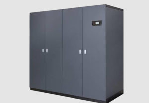 This range of DUAL FLUID water-cooled air-conditioners comprises twenty models, with cooling capacities ranging from 10 to 140 kW, all of which come with hermetic rotary or scroll compressors. Thanks to the standard electronic expansion valves, EC PLUG FANS, and suitability for a suction temperature of up to 40°C, these systems are energy-efficient and can be used in most computer rooms and data centres. All of them are available as down-flow and up-flow models, with the exception of the two largest models, which are only available as down-flow. Depending on capacity, the models have one or two separated cooling circuits with one to four compressors. Numerous options for communication, air distribution, humidification and additional heating can be added to these machines. The use of an additional chilled water battery in this unit also means the unit can, in general, also run on the building’s chilled water system, and when that fails it can cool on DX. For the associated dry cooler, see type BVE-DC.